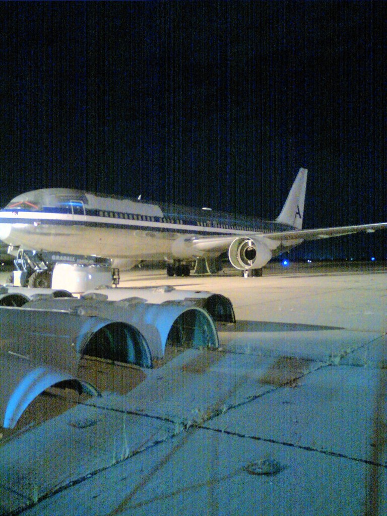 Since we arrived in darkness, I was not able to see much of the landscape when pulling up to the gate after landing. Upon exiting the airport terminal, and while we waited for the cab, we saw an old American Airlines jet parked near the perimeter fence in a state of dissassembly and not much else in the darkeness behind it. Little did we know the surprise that awaited us in the morning.