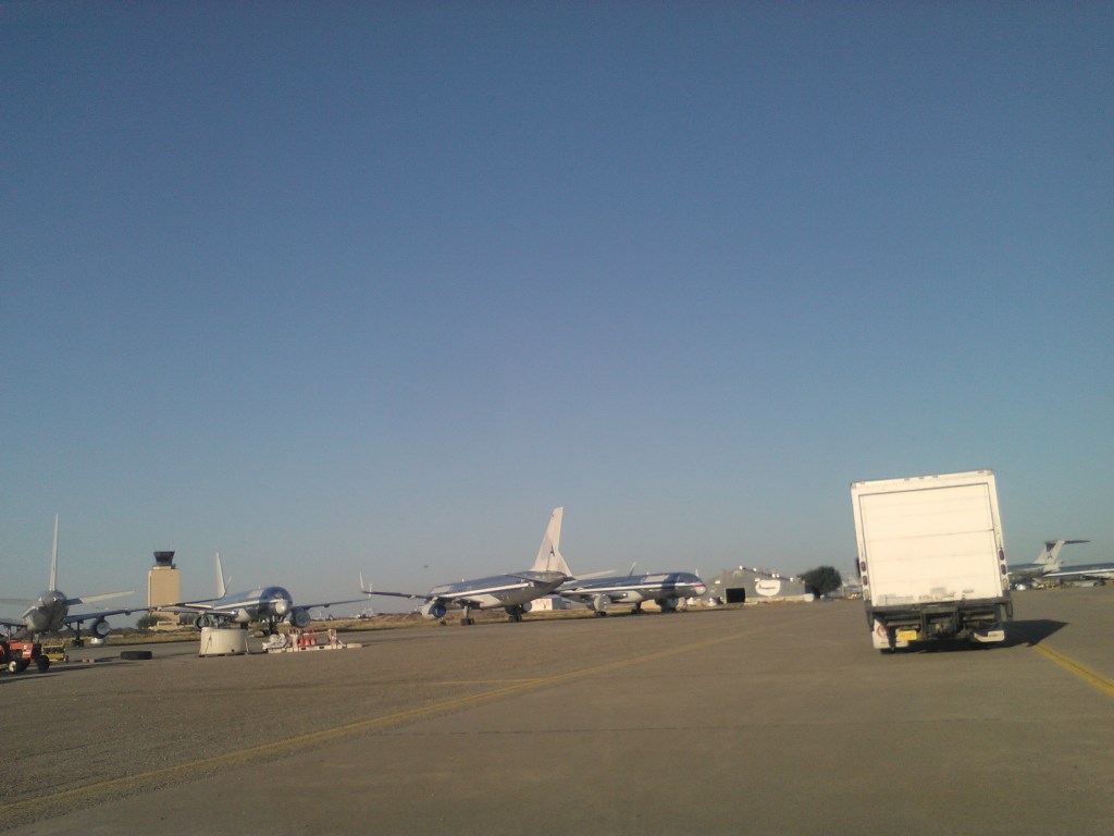 The next day we were to meet a technician from a reclaim company that took old commercial jets and resold them. We followed his truck through the rows of old unwanted planes perfectly lined up as if they were waiting for something.
