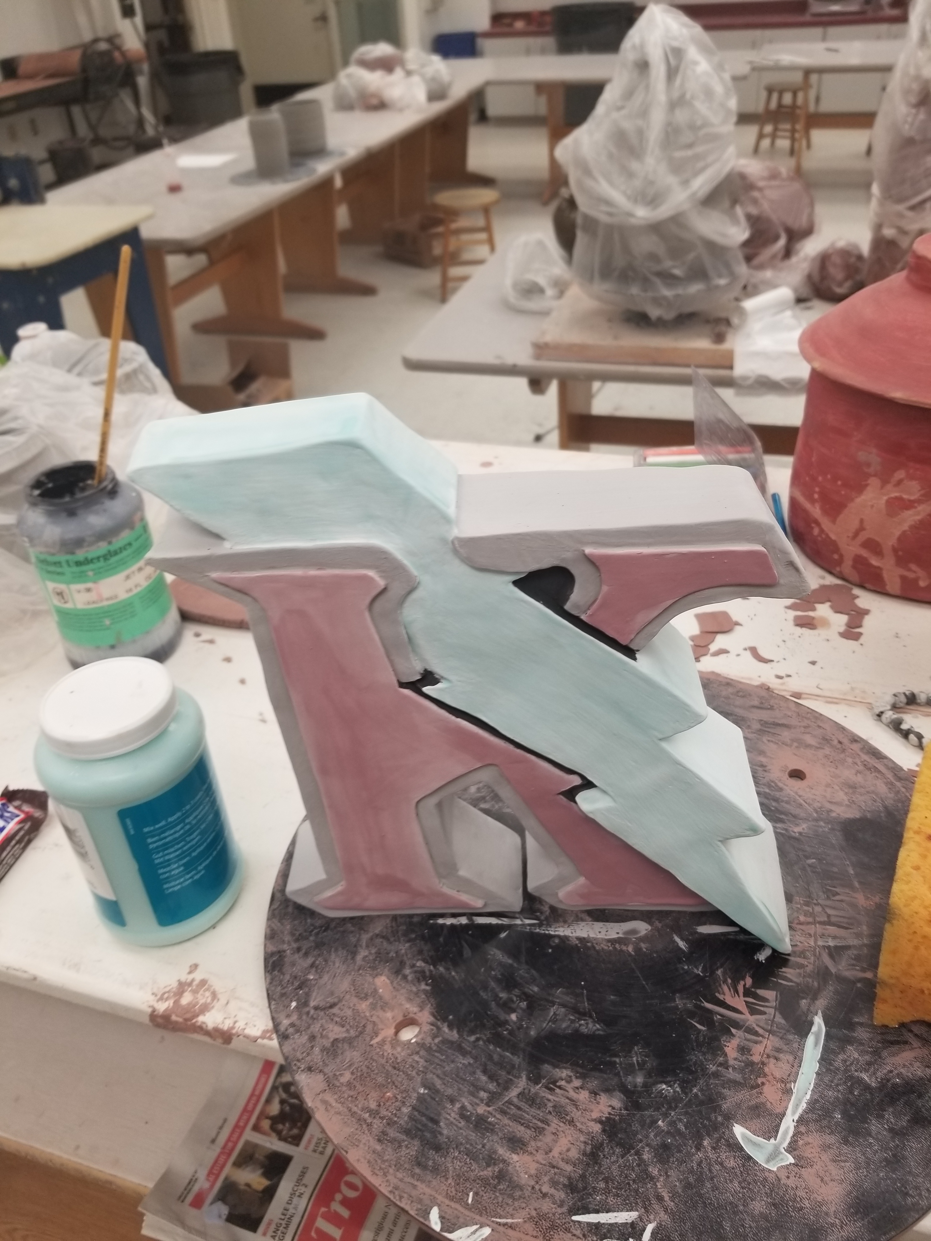 He took direction very quickly but acted in the same manner, quick. Ceramics is a medium that demands patience or else it reacts in unintended ways like cracking and exploding. I had to quickly teach him the benefits of patience but it want until things started to crack and explode that it started to sink in. I believe that in order to guide, you must first know where you’re going and how to get there. If he were to be successful as the daytime teacher, I would need to make sure he knows more than his students so he could be that guide and have a successful classroom environment. Top brass would not have a reason to cut the class again. We settled into a 2 nights a week schedule to work in the studio, one for the night class, and one night to ourselves without students. This second night for professional development and advancement of projects, it is the handshake day. Ideas get bounced around and subjects are explored and translated to the medium. Technical information is passed down and the studio flourishes a bit more each week that passes. This is the point where we’re at now. Two studio artists making the best out of a space that can now nurture the artistic process from a perspective beyond the singular mind.