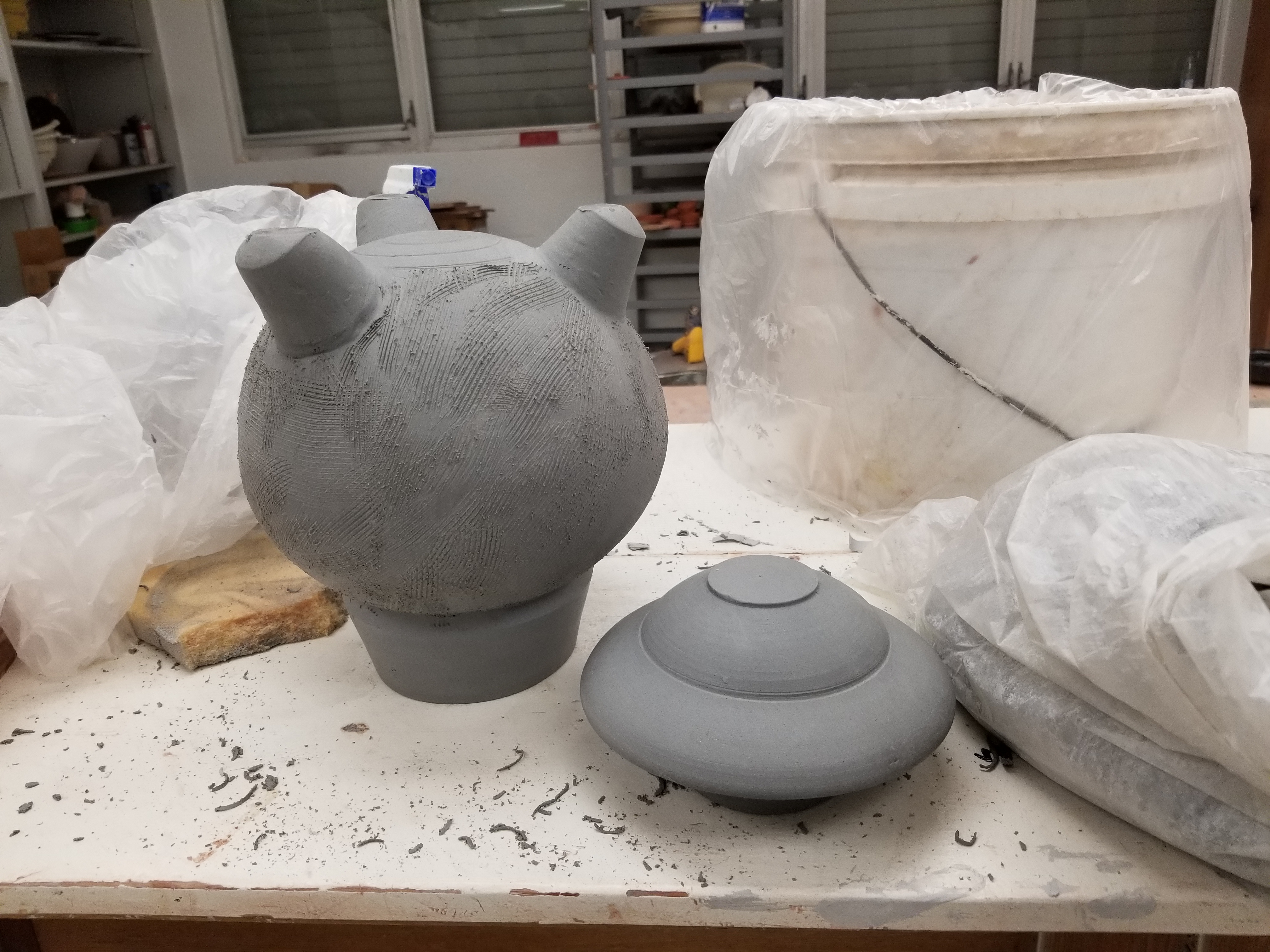 it was a nice time to play with clay because there was so much kiln space available. It allowed me to get into a head space of planning the next projects without worrying about kiln space. This went on for about a year untill the school finally secured a teacher for the ceramics studio. It was at this point that they decided to axe the night course. That’s right, the school cut the class and suddenly, I was out of a studio. Making ceased. I was thrown into turmoil because the work was hitting a stride and I was making things like I did in college when the flow came to an abrupt end. We had to take all our belongings from the studio.